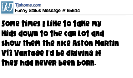 X is Some times I like to take my kids down to the car lot and show them the nice Aston Martin V12 Vantage I'd be driving if they had never been born.
