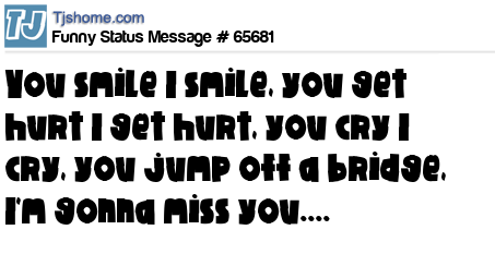 X  You smile I smile, you get hurt I get hurt, you cry I cry, you jump off a bridge, I'm gonna miss you....