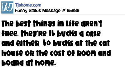 X  The best things in life aren't free, they're 16 bucks a case and either  60 bucks at the cat house or the cost of room and board at home.
