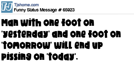 X is Man with one foot on 'yesterday' and one foot on 'tomorrow' will end up pissing on 'today'.