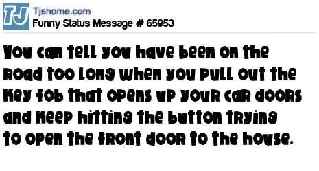 X You can tell you have been on the road too long when you pull out the key fob that opens up your car doors and keep hitting the button trying to open the front door to the house.