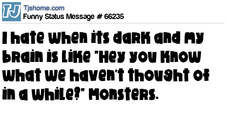 X says I hate when its dark and my brain is like "Hey you know what we haven't thought of in a while?" Monsters.
