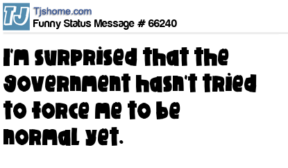 X I'm surprised that the government hasn't tried to force me to be normal yet.