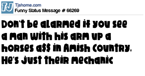 X is Don't be alarmed if you see a man with his arm up a horses a$$ in Amish Country, He's just their mechanic