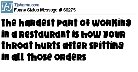 X  the hardest part of working in a restaurant is how your throat hurts after spitting in all those orders