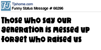 - # 123000 Those who criticize our generation forget who raised it. :p