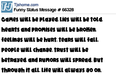 X says Games will be played, lies will be told, hearts and promises will be broken, feelings will be hurt, tears will fall, people will change, trust will be betrayed, and rumors will spread. But through it all, life will always go on.