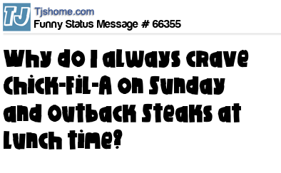 X says Why do I always crave Chick-Fil-A on Sunday and Outback Steaks at lunch time?