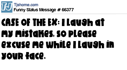 X says CASE OF THE EX: I laugh at my mistakes, so please excuse me while I laugh in your face.