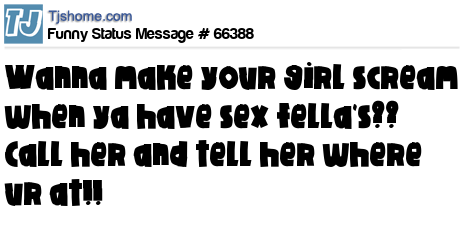 X is Wanna make your girl scream when ya have sex fella's?? Call her and tell her where ur at!!