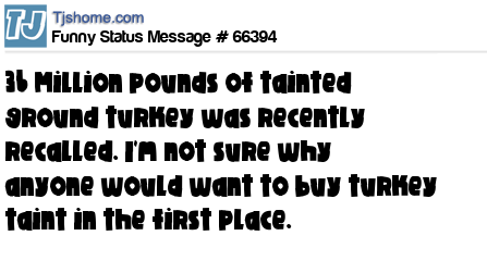 X  36 Million pounds of tainted ground turkey was recently recalled. I'm not sure why anyone would want to buy turkey taint in the first place.