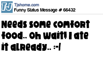 - # 119236 I'm eating nothing but comfort food tonight...cookies, ice cream, pizza. I don't even care, but I think I'm starting to like food way more than people.