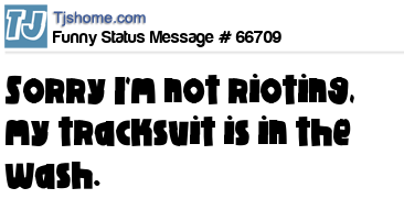 X is Sorry I'm not rioting, my tracksuit is in the wash.