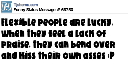 X Flexible people are lucky, when they feel a lack of praise, they can bend over and kiss their own asses :P
