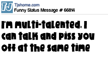 - # 75762 I know a million ways to always pick the wrong thing to say! Hey... I'm multi-talented!! I can talk and piss you off at the same time!