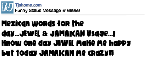 X is Mexican words for the day...JEWEL & JAMAICAN Usage...I know one day JEWEL make me happy but today JAMAICAN me crazy!!