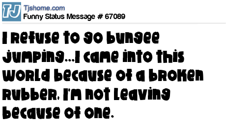 - # 82708 I refuse to go bungee jumping...I came into this world because of a broken rubber, I'm not leaving because of one!!