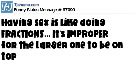 - # 44669 having sex is like doing FRACTIONS... It's IMPROPER for the larger one to be on top!