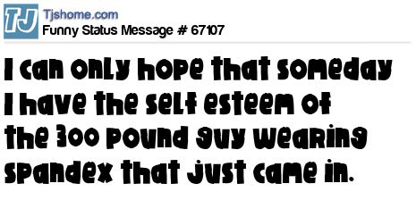X I can only hope that someday I have the self esteem of the 300 pound guy wearing spandex that just came in.