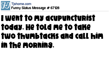 X says I went to my acupuncturist today. He told me to take two thumbtacks and call him in the morning.