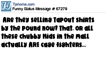 X Are they selling Tapout shirts by the pound now? That, or all these chubby kids in the mall actually ARE cage fighters...