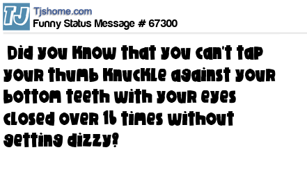 X is Did you know that you can't tap your thumb knuckle against your bottom teeth with your eyes closed over 16 times without getting dizzy?