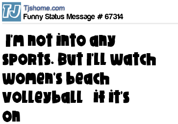 - # 72456 I'm not into sports, but I'll watch women's beach volleyball if it's on.
