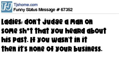 - # 67366 Don't judge a a person on some crap that you heard about their past. If you wasn't in it then it's none of your business.!!!