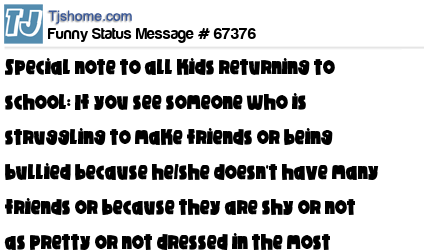 X is Special note to all kids returning to school: If you see someone who is struggling to make friends or being bullied because he/she doesn't have many friends or because they are shy or not as pretty or not dressed in the most "in" clothes,PLEASE step up.
