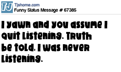 - # 148214 People assume when I yawn that I’ve lost interest in what they have to say but truth be told, I was never interested.