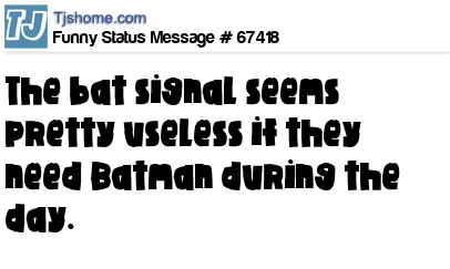- # 184196 I wonder if Batman ever looks up in the night sky at the Bat Signal and says, I told him to just text me.