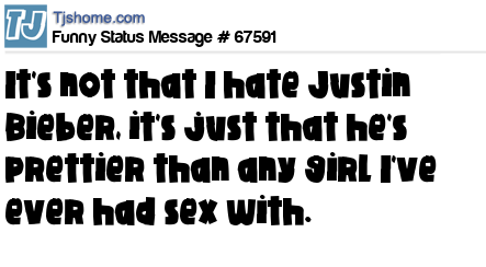 X It's not that I hate Justin Bieber, it's just that he's prettier than any girl I've ever had sex with.