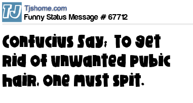X Confucius Say; To get rid of unwanted pubic hair, one must spit.