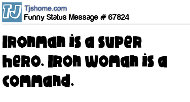 - # 208400 What's the difference between Iron Man and Iron woman? One's a super hero and the other is a simple command.