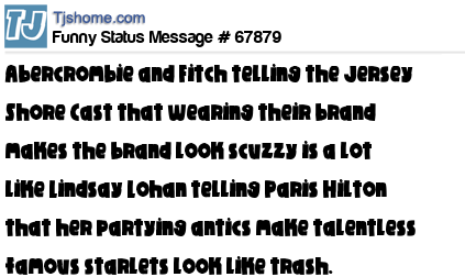 X Abercrombie and Fitch telling the Jersey Shore Cast that wearing their brand makes the brand look scuzzy is a lot like Lindsay Lohan telling Paris Hilton that her partying antics make talentless famous starlets look like trash.