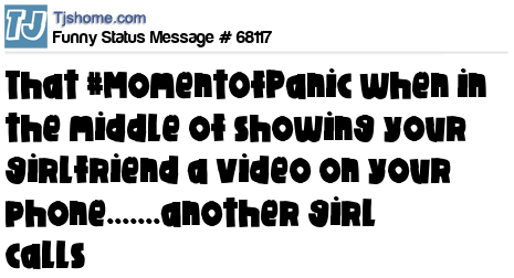 X is That #MomentOfPanic when in the middle of showing your girlfriend a video on your phone.......another girl calls