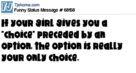 X If your girl gives you a "choice" preceded by an option, the option is really your only choice.