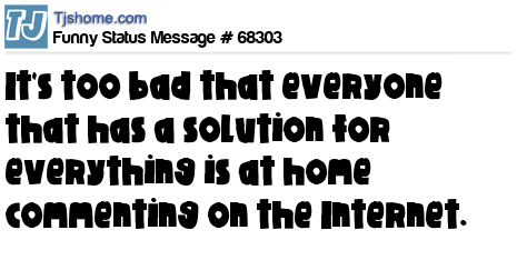 X It's too bad that everyone that has a solution for everything is at home commenting on the Internet.