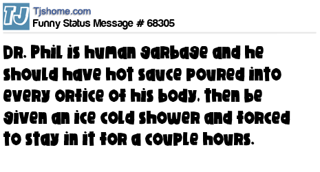X says Dr. Phil is human garbage and he should have hot sauce poured into every orfice of his body, then be given an ice cold shower and forced to stay in it for a couple hours.
