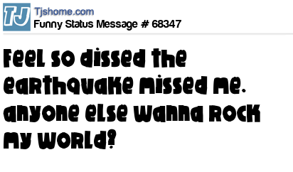 X says feel so dissed the earthquake missed me. anyone else wanna rock my world?
