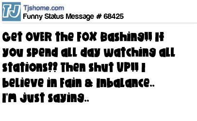 X is Get OVER the FOX Bashing!! If you spend all day watching all stations?? Then shut UP!! I believe in Fain & Inbalance.. I'm just saying..