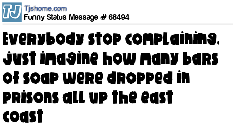 X is everybody stop complaining, just imagine how many bars of soap were dropped in prisons all up the east coast