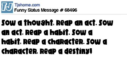 X says Sow a thought, reap an act. Sow an act, reap a habit. Sow a habit, reap a character. Sow a character, reap a destiny!