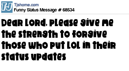X says Dear Lord, please give me the strength to forgive those who put LOL in their status updates