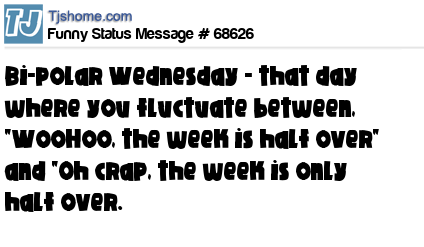 - # 172772 Bi-polar Wednesday - that day where you teeter between, "Woo Hoo, the week is half over" and *tear*, "the week is only half over.