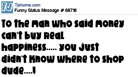 X  To the man who said money can't buy real happiness..... you just didn't know where to shop dude....!