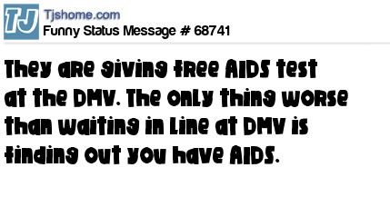 X They are giving free AIDS test at the DMV. The only thing worse than waiting in line at DMV is finding out you have AIDS.
