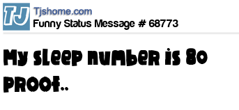 - # 130161 The Sleep Number bed commercial came on & the spokeswoman asked "So what's YOUR sleep number?" I hollered out "80 proof."