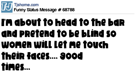 X is I'm about to head to the bar and pretend to be blind so women will let me touch their faces.... good times...
