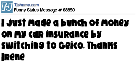 X I just made a bunch of money on my car insurance by switching to Geico, Thanks Irene